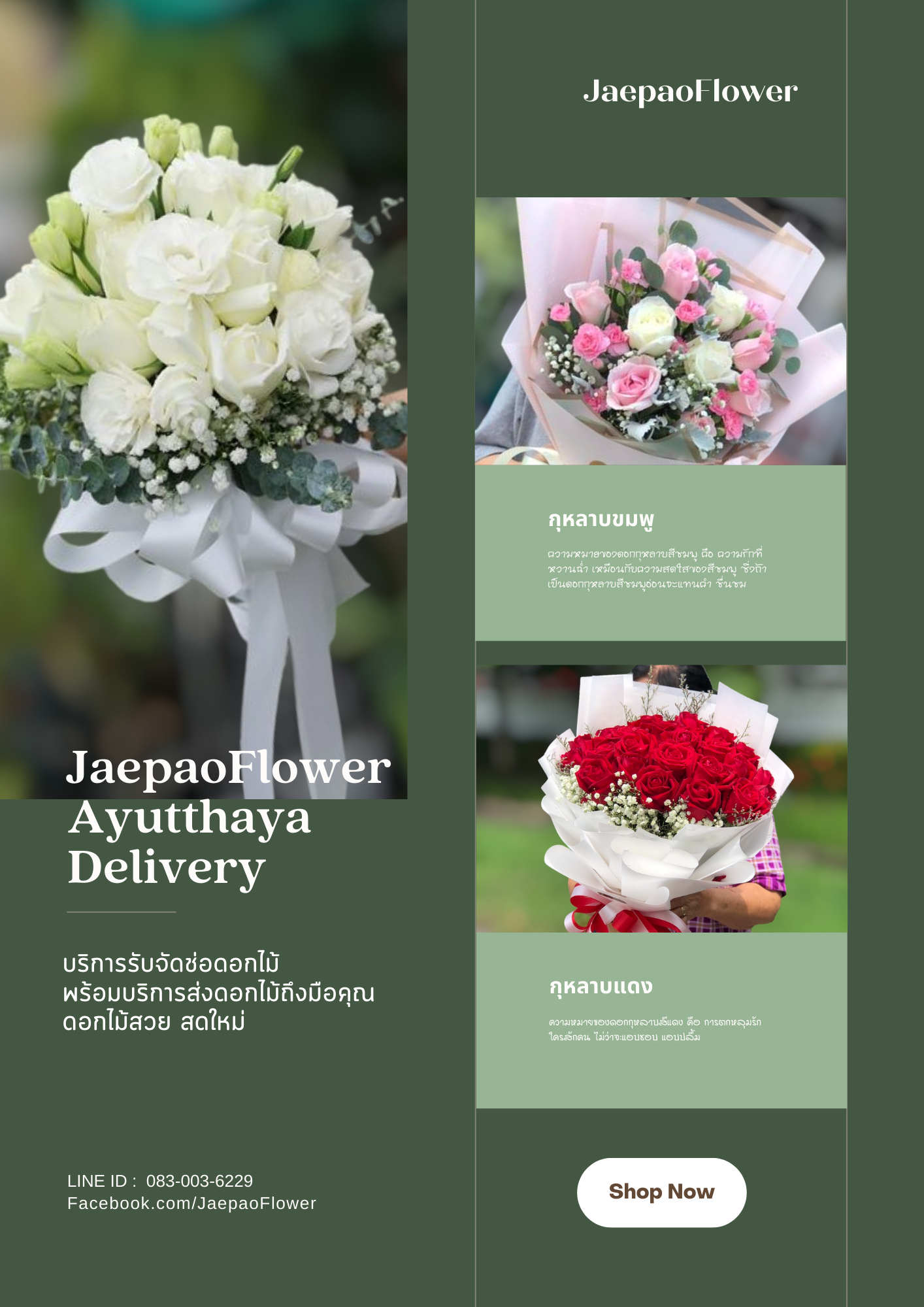ร้านดอกไม้ตลาดหัวรอ อยุธยา รับจัดดอกไม้สด,บริการรับสั่งดอกไม้,ช่อดอกไม้ โรจนะ