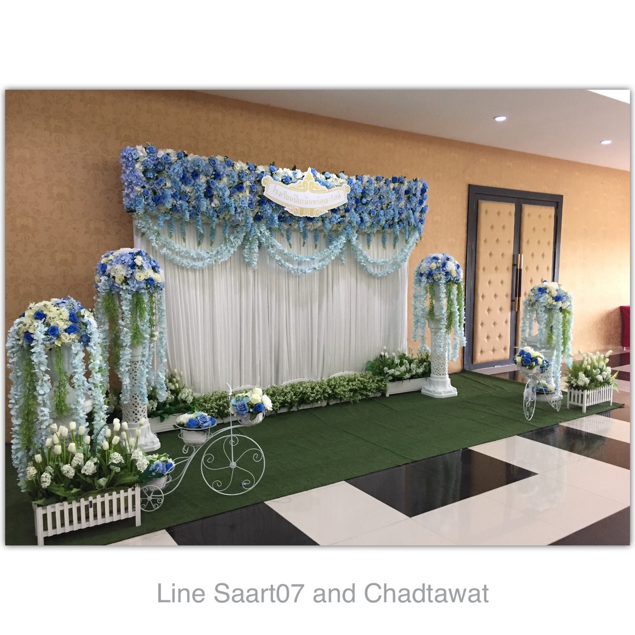 ฉากถ่ายรูปงานกินเลี้ยง ซุ้มดอกไม้แห้ง ฉากรดน้ำสังข์ ฉากรับไหว้ ฉากพระสงฆ์ พิธีรับไหว้ ซุ้มถ่ายรูปงานกินเลี้ยง