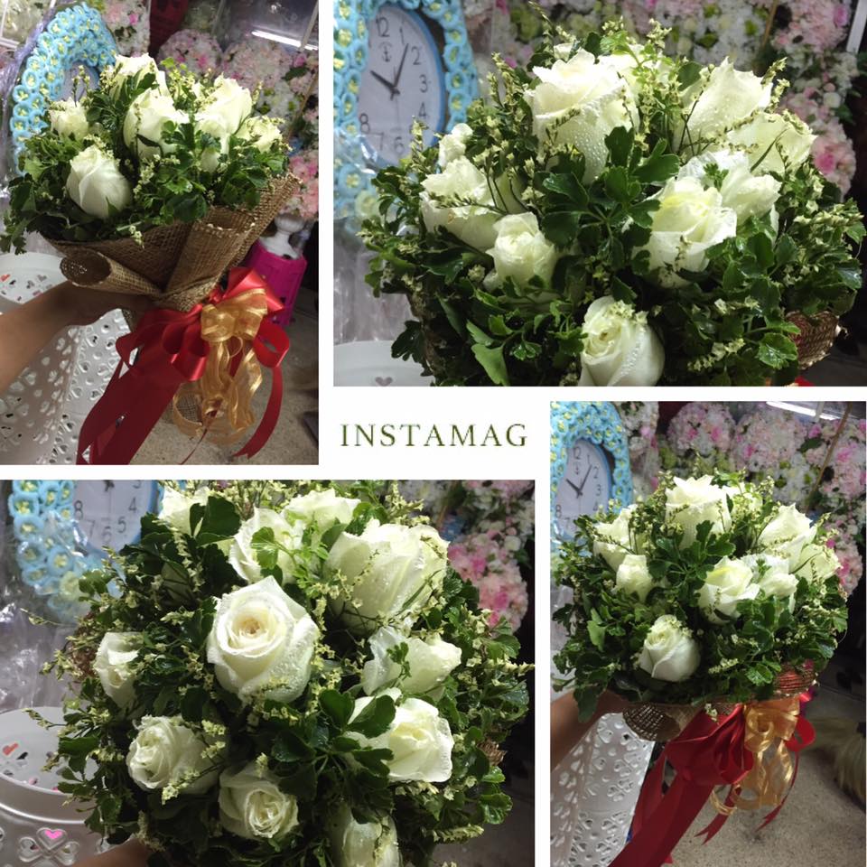 ช่อดอกกุหลาบขาวล้วน แซมดอกสุ่ย
