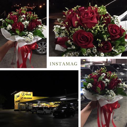ช่อดอกกุหลาบแดง แซมดอกสุ่ย
