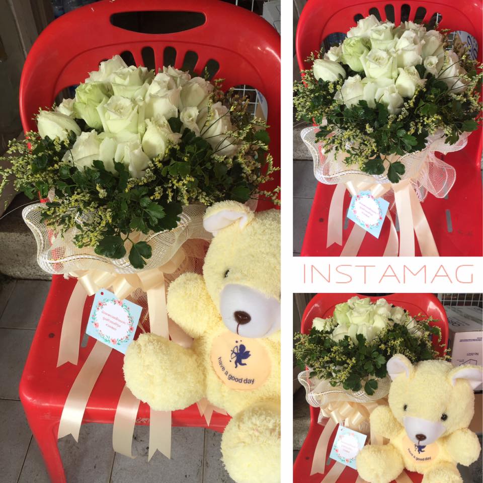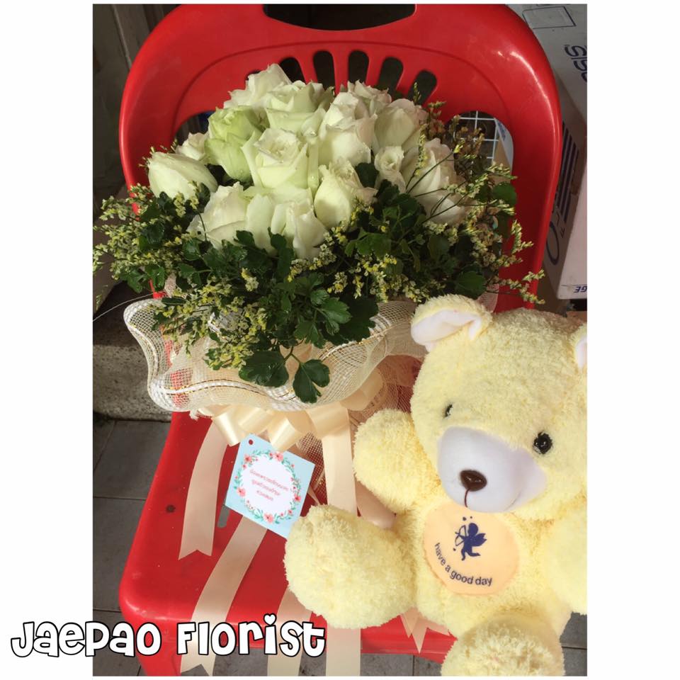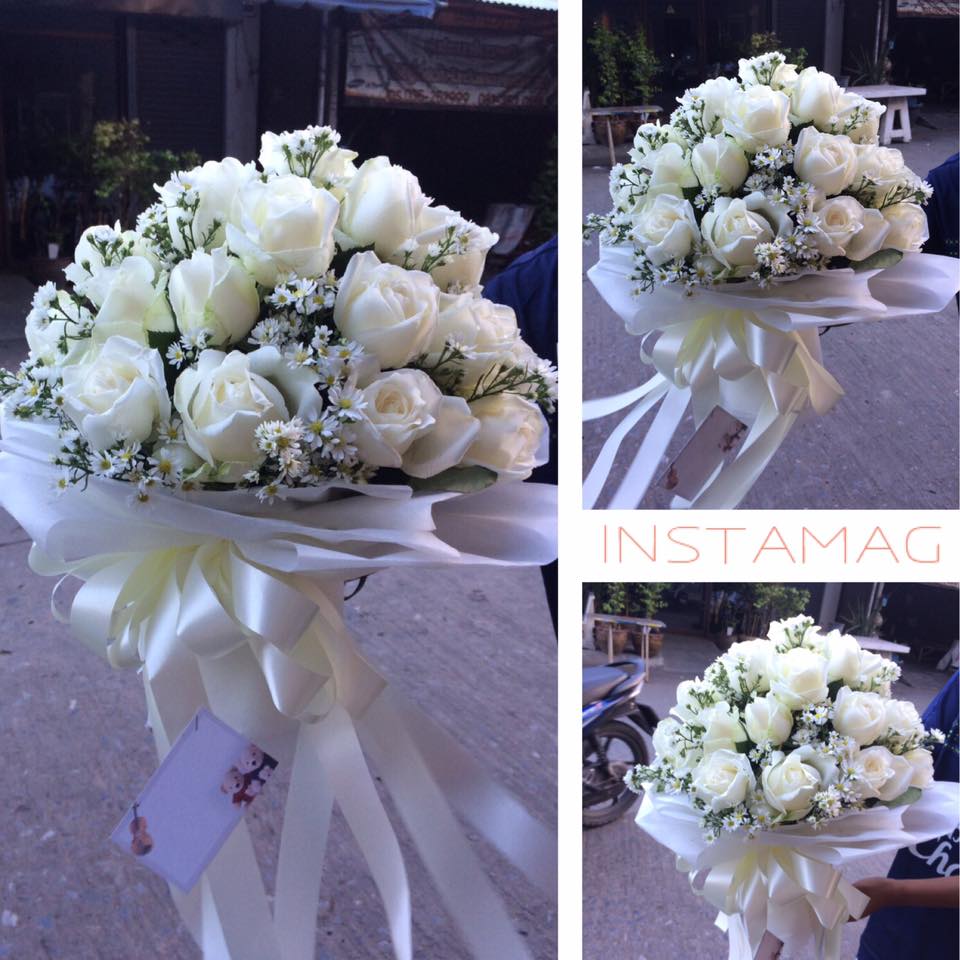 ช่อดอกกุหลาบขาวล้วน แซมดอกสุ่ย