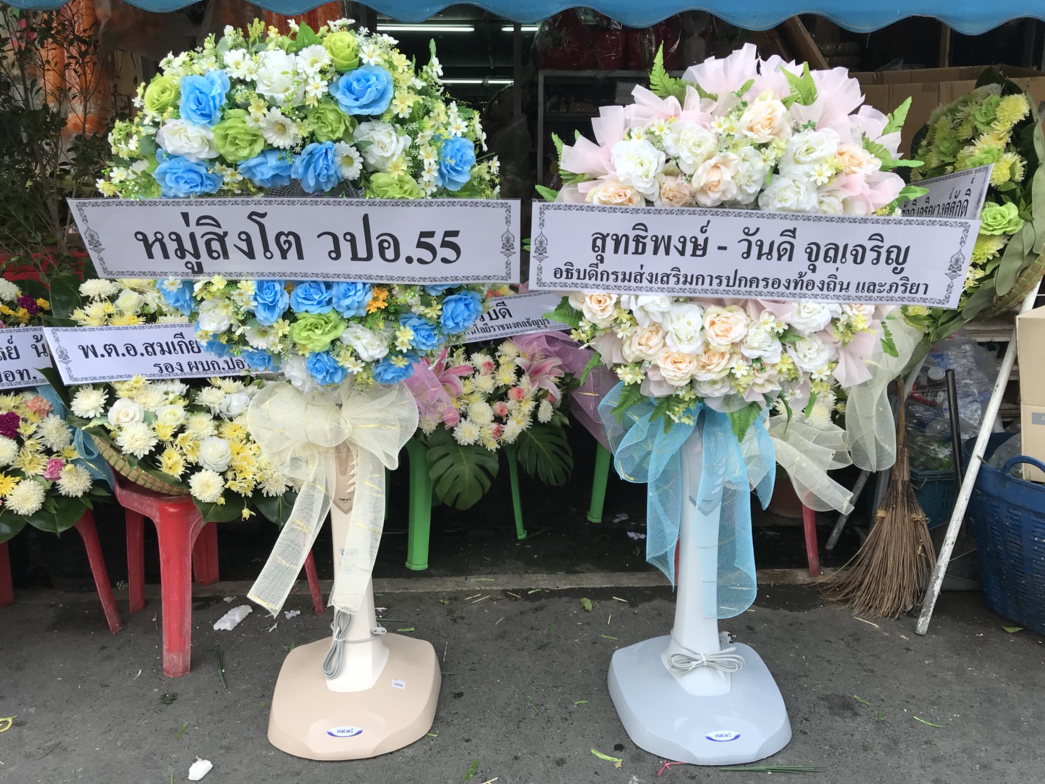 รับจัดพวงหรีด พวงหรีดพัดลมดอกไม้สด พวงหรีดผ้าแพร พวงหรีดนาฬิกา พวงหรีดต้นไม้