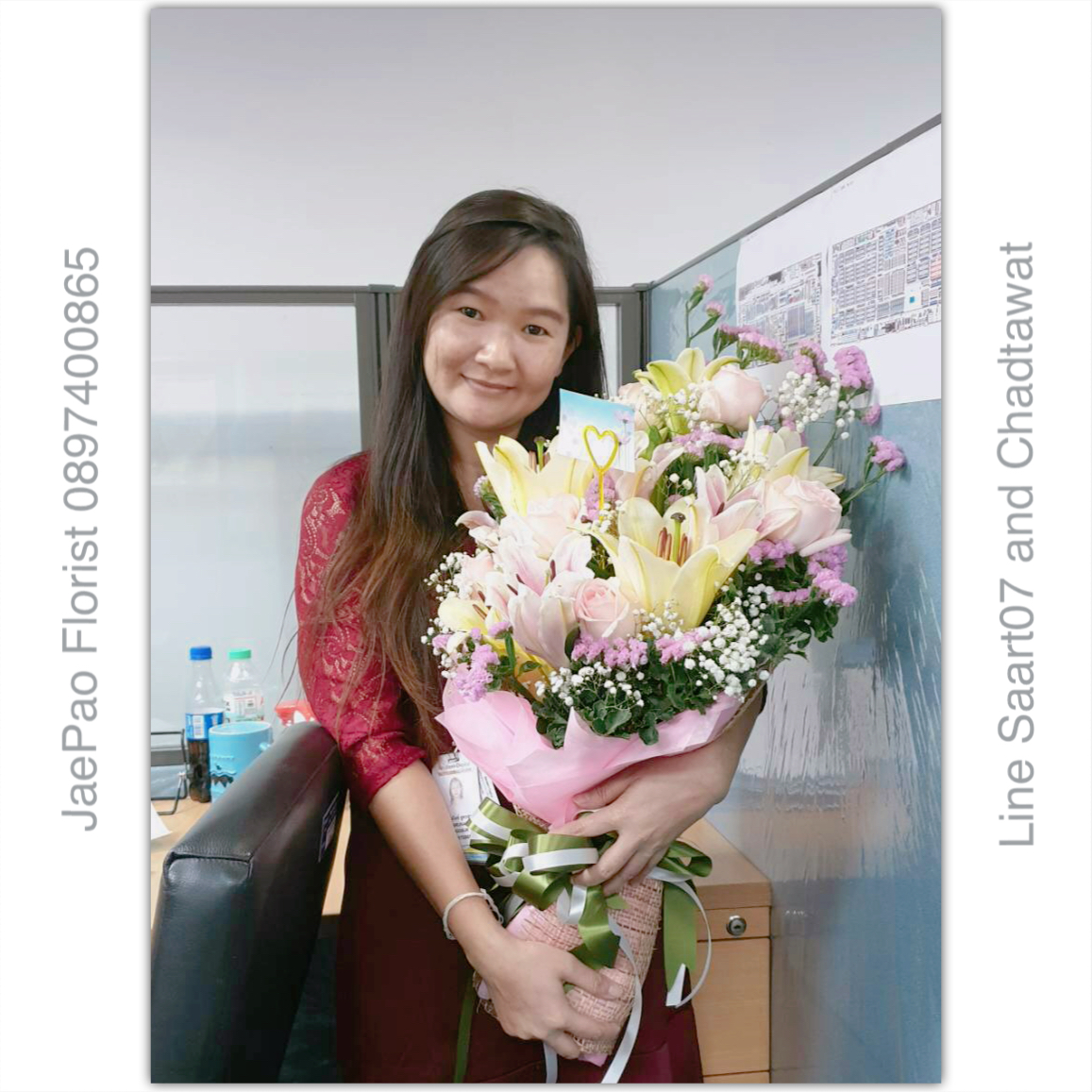 ช่อดอกไม้วันเกิด ช่อลิลลี่ ช่อคาร์เนชั่น ช่อรับปริญา ลูกโป่ง ตุ๊กตาหมี