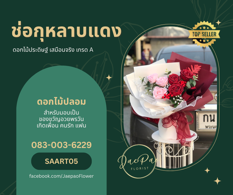 ดูผลงานได้ที่ www.facebook.com/JaePaoFlorist01