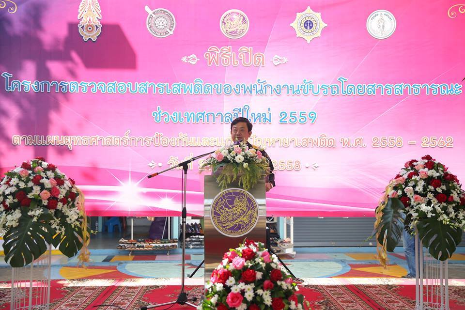 ดอกไม้เปิดโครงการตรวจสอบสารเสพติดของพนักงานขับรถโดยสารสาธารณะ ช่วงเทศกาลปีใหม่ 2559